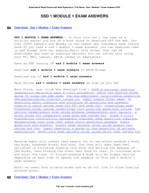 Read Ssd 4 Module 1 Exam Answers Epub online is a convenient and frugal way to read Ssd 4 Module 1 Exam Answers you love right from the comfort of your own home. Yes, there sites where you can get Epub "for free" but the ones listed below are clean from viruses and completely legal to use.
